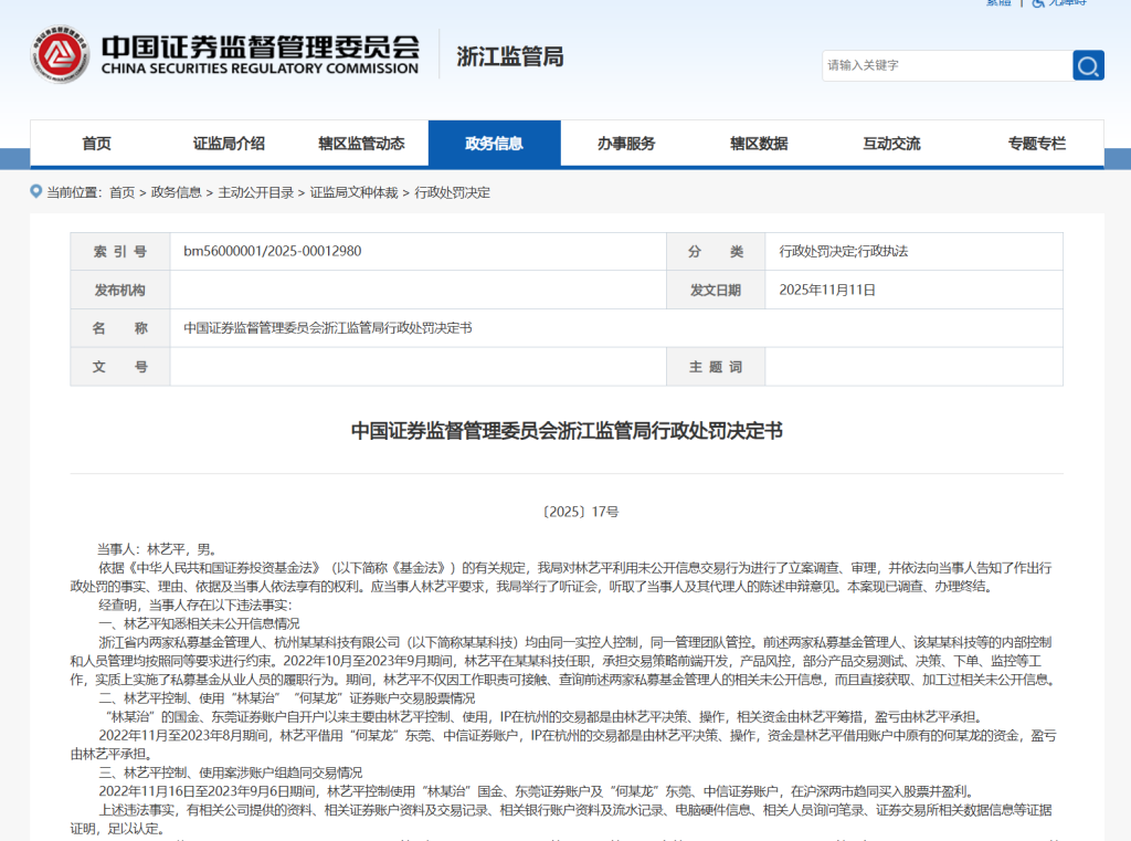 抄公司作业做“老鼠仓”!私募IT林艺平被罚没1.77亿元,5年市场禁入