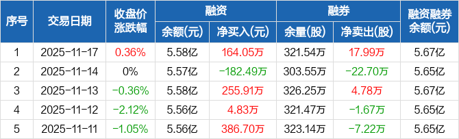 和辉光电融资融券信息显示,2025年11月17日融资净买入164.05万元;融资余额5.58亿元,较前一日增加0.29%。