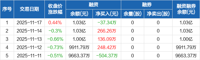 新柴股份融资融券信息显示,2025年11月17日融资净偿还37.34万元;融资余额1.03亿元,较前一日下降0.36%。