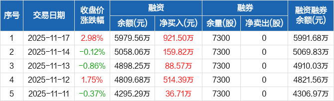 万祥科技:融资余额5979.56万元,创近一年新高(11-17)