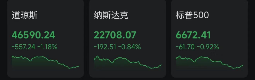 当地时间周一,美股市场遇冷。截至收盘,道指跌1.18%,报46590.24点;纳指跌0.84%,报22708.07点;标普500指数跌0.92%,报6672.41点。机构分析认为,美股现阶段主要受情绪扰动,基本面尚未失控。