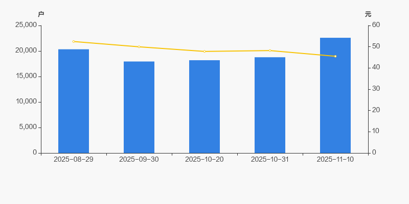 自2025年9月30日以来,公司股东户数连续3期上涨,截至目前增幅为25.90%。2025年9月30日至2025年11月10日区间股价下降8.91%。