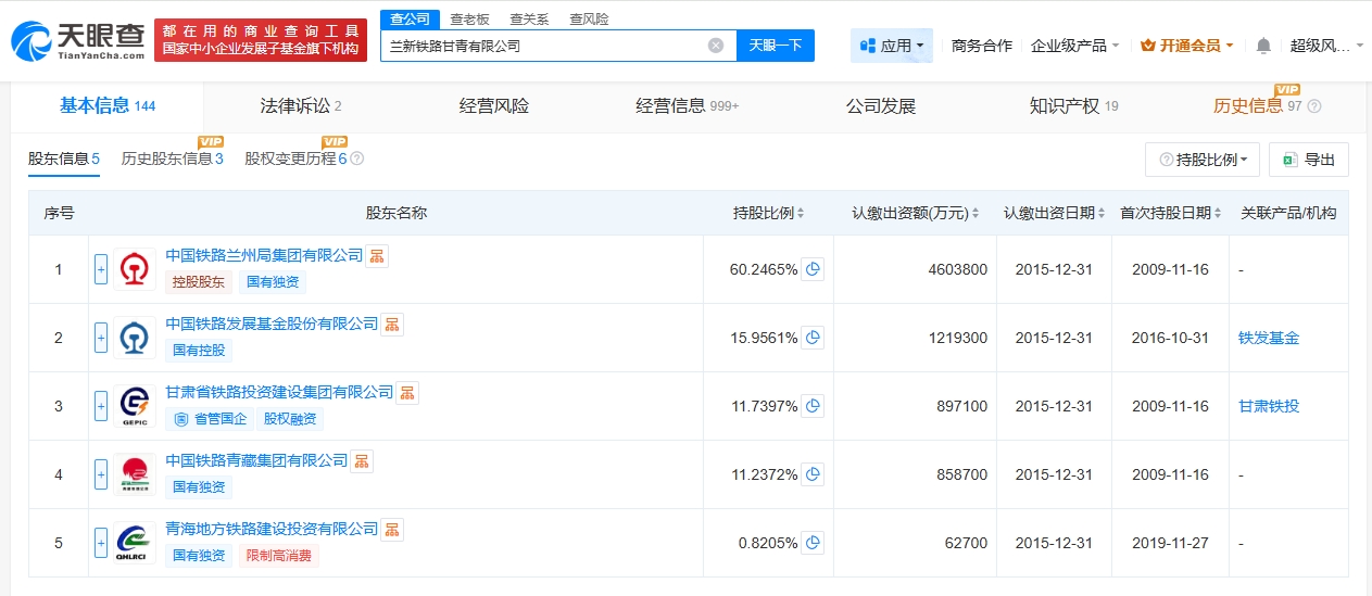 每经AI快讯,天眼查App显示,近日,兰新铁路甘青有限公司发生工商变更,注册资本由764.16亿元人民币增至约813.8亿元人民币,增幅约6.5%,同时部分高管发生变更。该公司成立于2009年11月,法定代表人为唐文国,经营范围包括铁路建设和客货运输,运输设施的安装、维修和服务,房地产开发、土地综合开发等。股东信息显示,该公司由中国铁路兰州局集团有限公司、中国铁路发展基金股份有限公司、甘肃省铁路投资建设集团有限公司等共同持股。