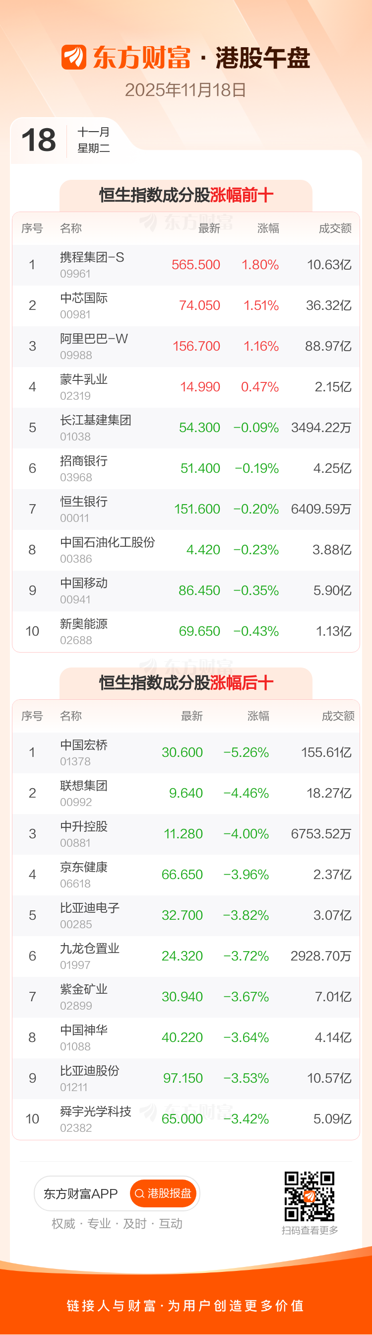 11月18日港股午盘:恒指跌1.47% 中国宏桥领跌成分股