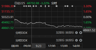 11月18日,日韩股市收盘齐跌,均跌逾3%。日经225指数跌3.22%,报48702.98点;韩国综合指数跌3.32%,报3953.62点。