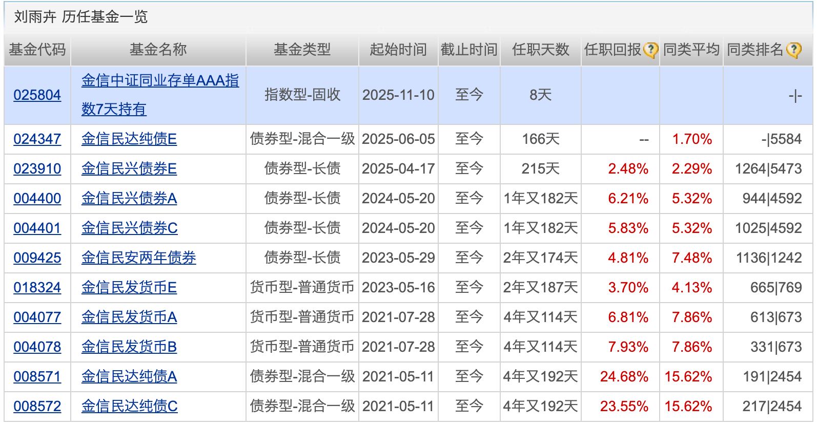 基金经理部分过往业绩: