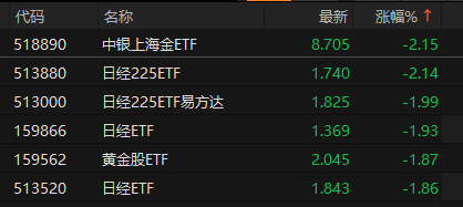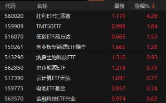 ETF开盘:红利ETF汇添富涨4.28% 中银上海金ETF跌2.15%