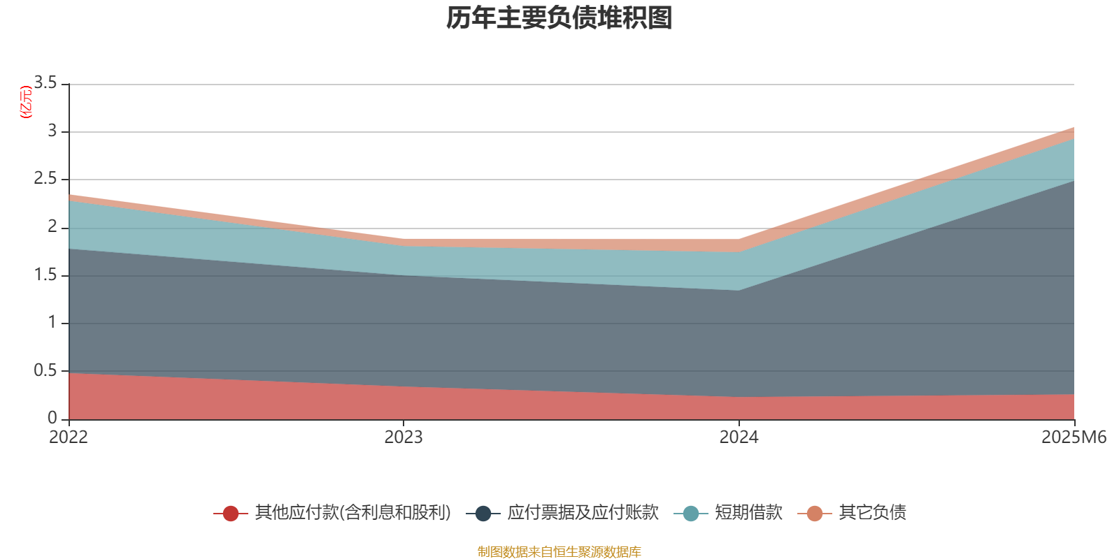 负债重大变化方面,截至2025年6月,公司应付票据及应付账款较上期末增加100.7%,占公司总资产比重上升13.4个百分点;短期借款较上期末增加10.02%,占公司总资产比重下降0.96个百分点;其他应付款(含利息和股利)较上期末增加11.66%,占公司总资产比重下降0.5个百分点;递延收益较上期末减少20.02%,占公司总资产比重下降0.37个百分点。