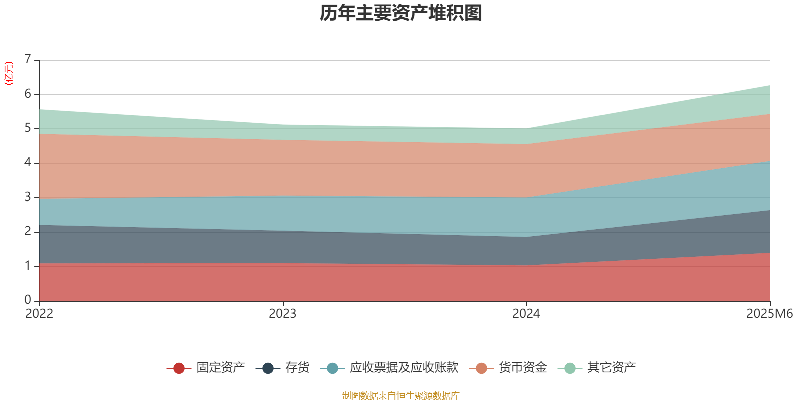 资产重大变化方面,截至2025年6月,公司货币资金较上期末减少11.72%,占公司总资产比重下降9.14个百分点;交易性金融资产占公司总资产的4.79%,上期末为0;存货较上期末增加50.66%,占公司总资产比重上升3.36个百分点;固定资产较上期末增加35.25%,占公司总资产比重上升1.67个百分点。