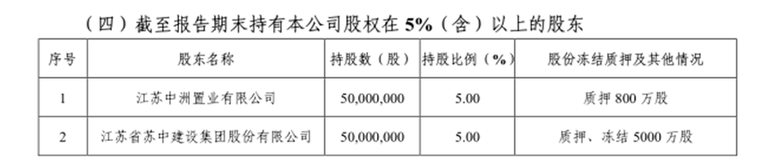 记者翻阅了该行过往几年财报发现,早在2021年年报中苏中建设集团所持股份就已全部质押且冻结并持续到现在。