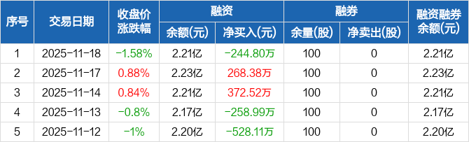 中环海陆:融资净偿还244.8万元,融资余额2.21亿元(11-18)