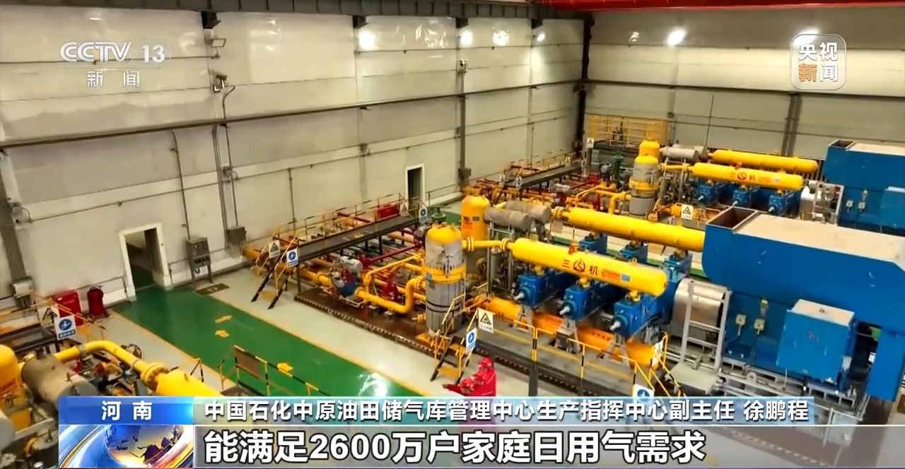 中国石化中原油田储气库管理中心生产指挥中心副主任徐鹏程:入冬前,中原油田储气库群完成注气储备9.4亿立方米,较去年多储备1.2亿立方米,达到历史最高水平。在用气高峰期,能满足2600万户家庭的日用气需求。