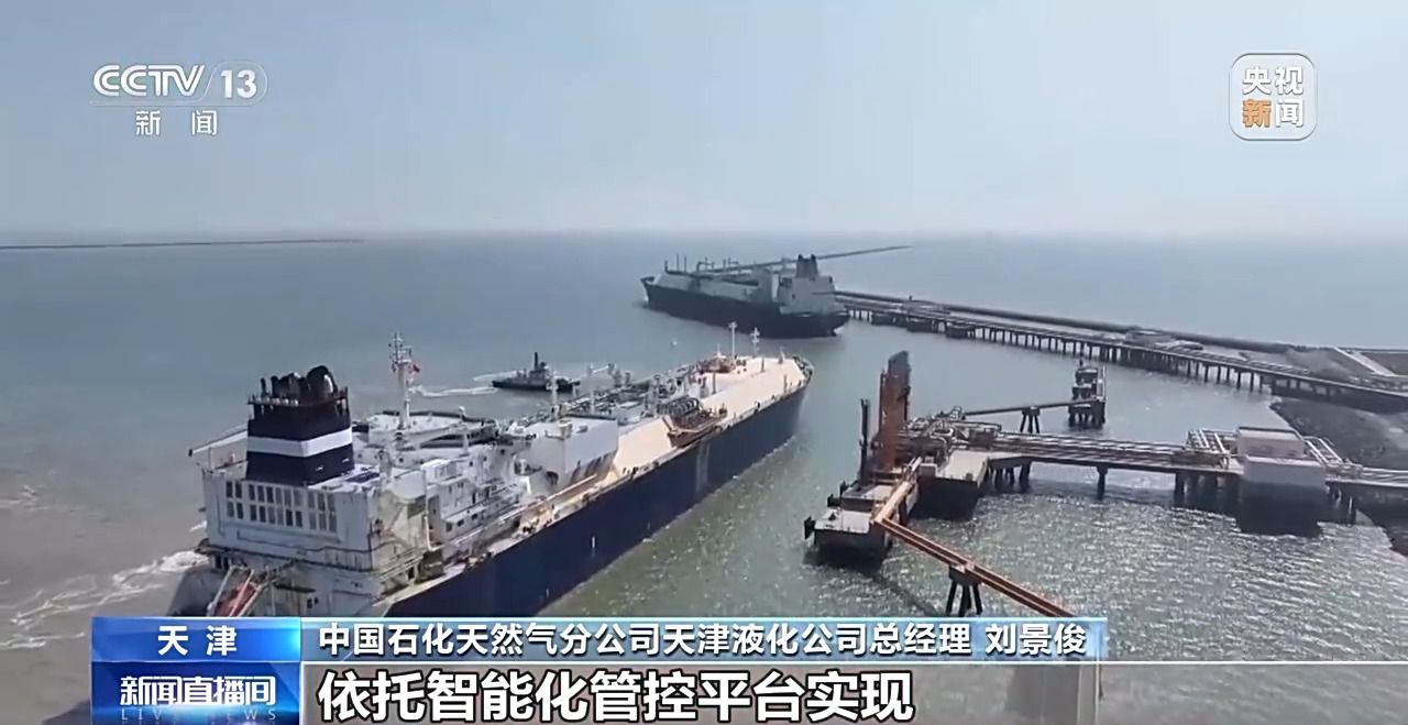 中国石化天然气分公司天津液化公司总经理刘景俊:依托智能化管控平台,实现从船舶接卸到管网外输的全链条精细化管理,日均外输气量在1000万立方米左右,高峰期外输能力可以达到5800万立方米。