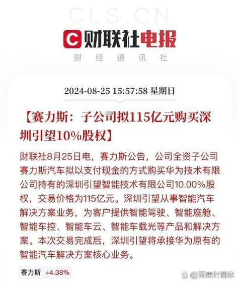 赛力斯集团以115亿元现金收购华为旗下深圳引望智能技术有限公司10%股权,成为中国智能汽车领域近期最受瞩目的资本与产业协同事件。这笔交易不仅标志着赛力斯从“代工合作方”向“技术共享方”的身份跃迁,也意味着华为在坚持“不造车”原则下,通过引望平台构建开放生态的战略迈出关键一步。这场合作的背后,是技术、品牌、资本与制造能力的深度绑定,正在重塑中国智能汽车产业链的新格局。