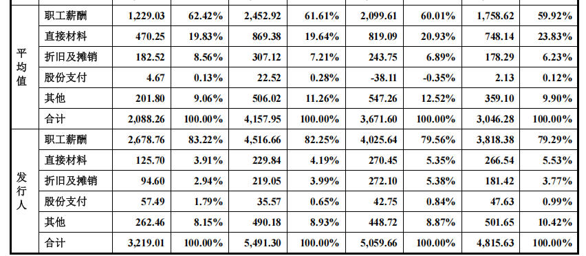 问询函指出,报告期各期,公司研发费用为4788.83万元、5059.66万元和5491.30万元,研发费用率为7.22%、7.05%和6.72%。其中,研发人员薪酬占比约80%,研发领料占比相对较低。研发人员各期末数量分别为181人、173人和198人。