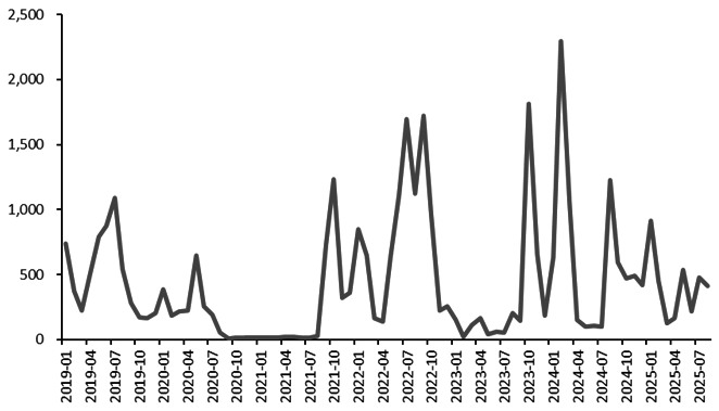 图为印度白银进口量(单位:吨)