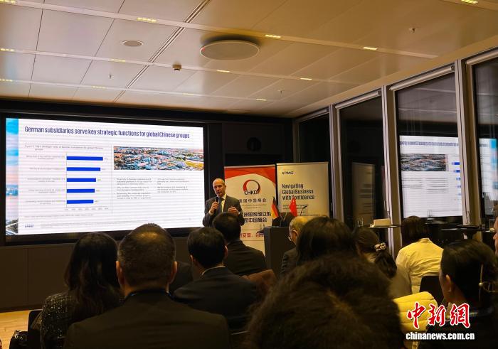 当地时间11月18日,德国中国商会(CHKD)联合毕马威会计师事务所在柏林发布《在德中资企业营商环境调查报告2025》。图为毕马威德国国际业务管理合伙人安德烈亚斯·格伦茨(AndreasGlunz)介绍报告内容。中新社记者马秀秀摄