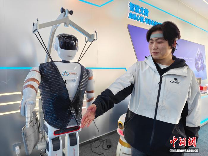11月18日,湖南首家机器人4S店内的脑机接口控制机器人。中新网记者唐小晴摄