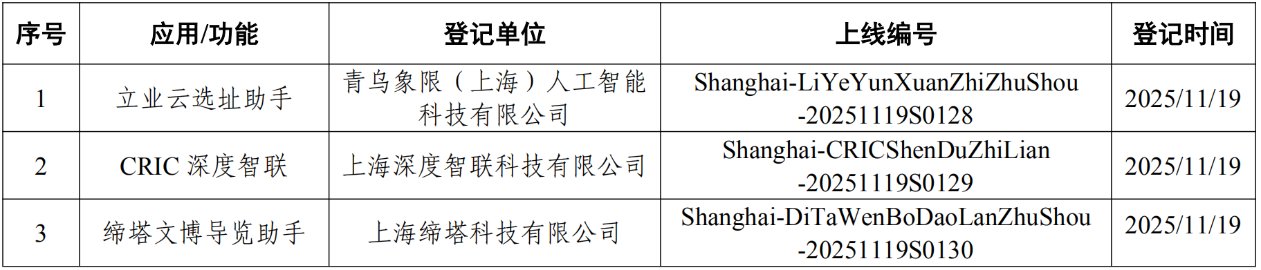“网信上海”微信公众号消息,截至11月19日,上海市新增3款已完成登记的生成式人工智能服务,累计已完成130款生成式人工智能服务登记。