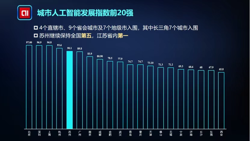 相比之下,苏州显得低调许多。不过从产业基础看,苏州在全国AI版图中已占据重要位置。