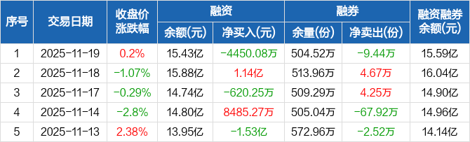 创业板ETF:融资净偿还4450.08万元,融资余额15.43亿元(11-19)