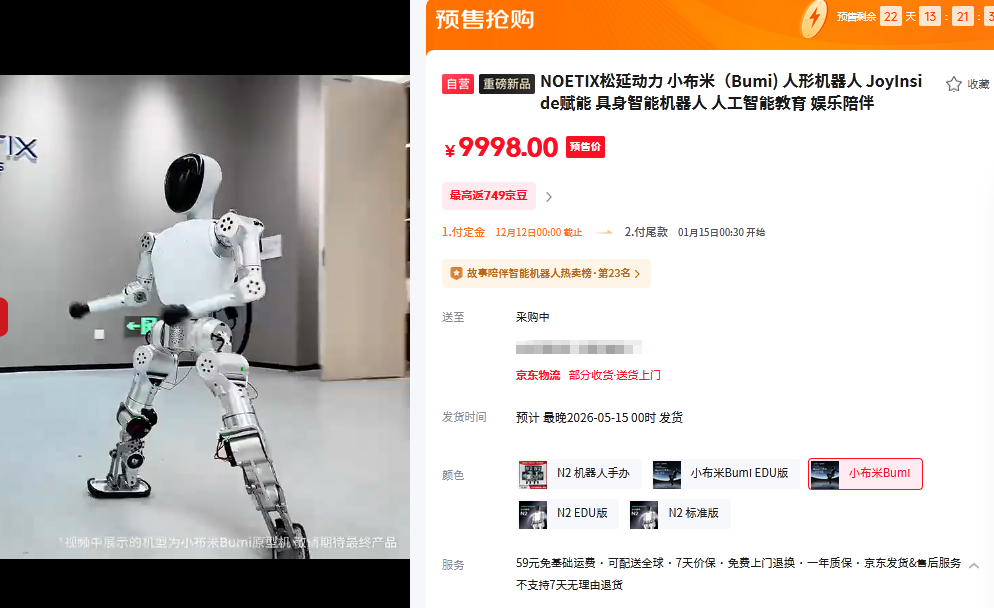 图片来源:NOETIX(松延动力)自营旗舰店商品页面