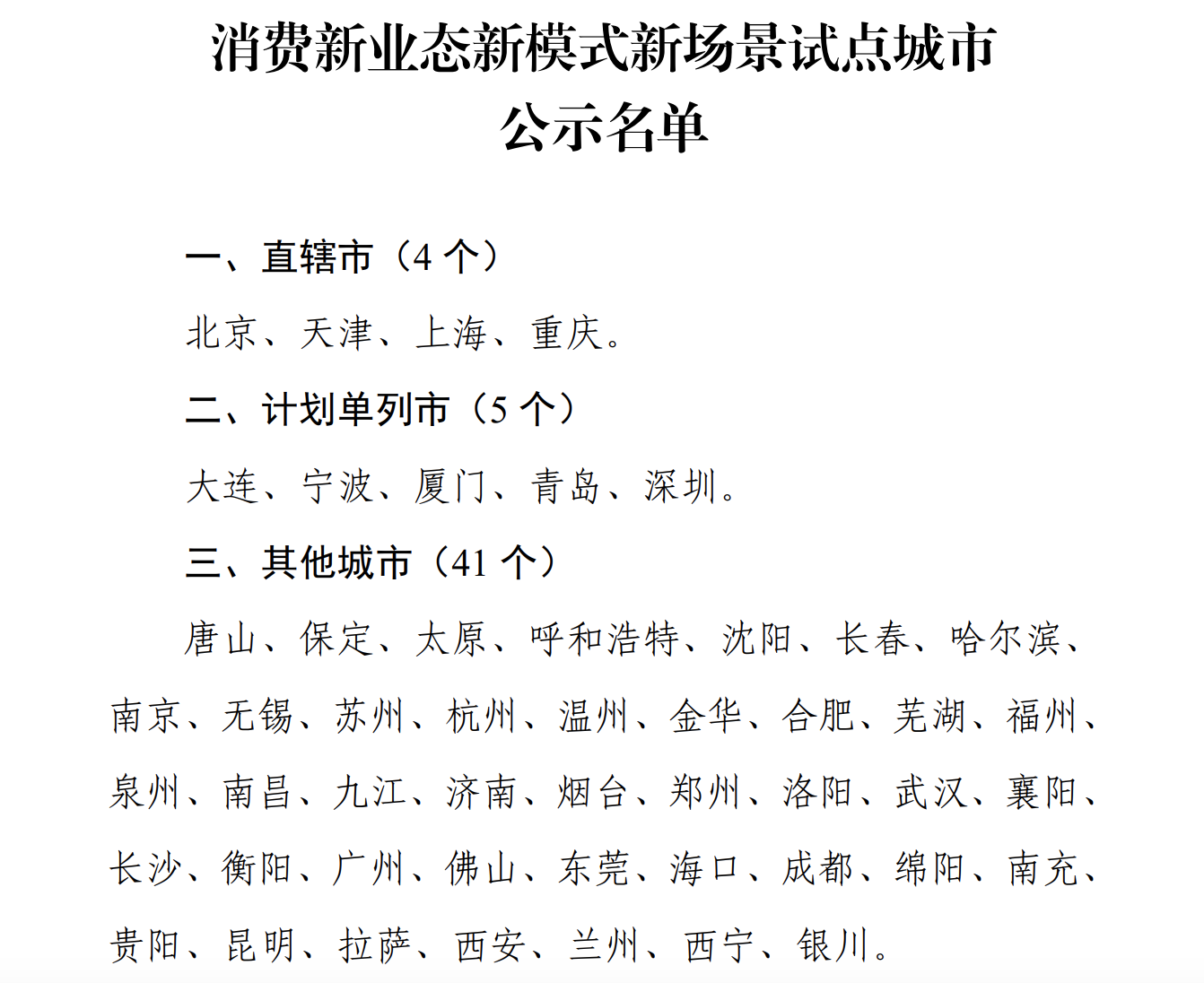 财政部公示消费新业态新模式新场景试点城市竞争性评审结果