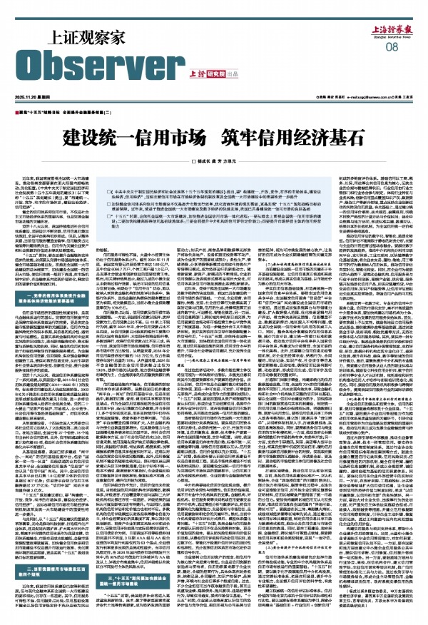 上证观察家 | 建设统一信用市场 筑牢信用经济基石