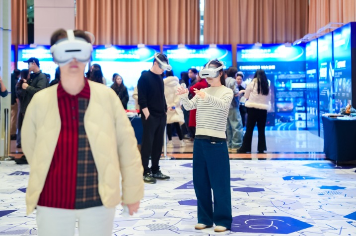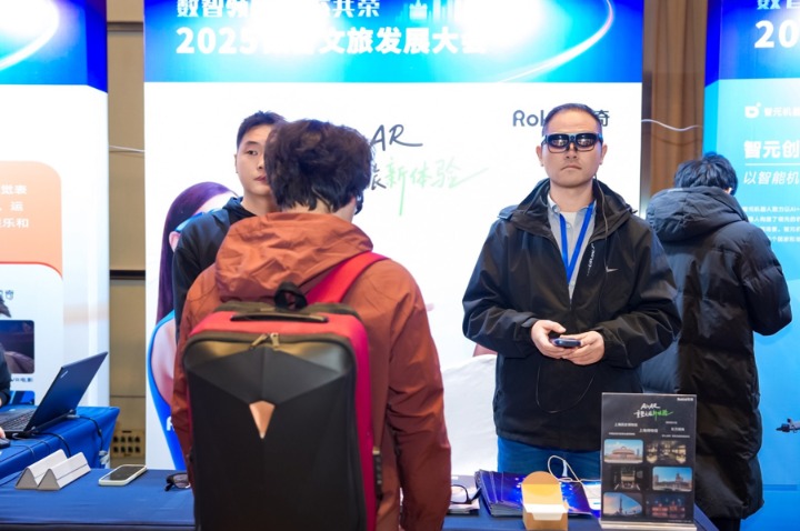 2025数智文旅发展大会展区,人们正在体验VR眼镜。