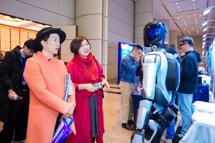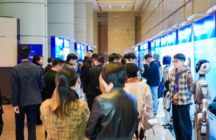 2025数智文旅发展大会展区,人们对文旅机器人充满兴趣。
