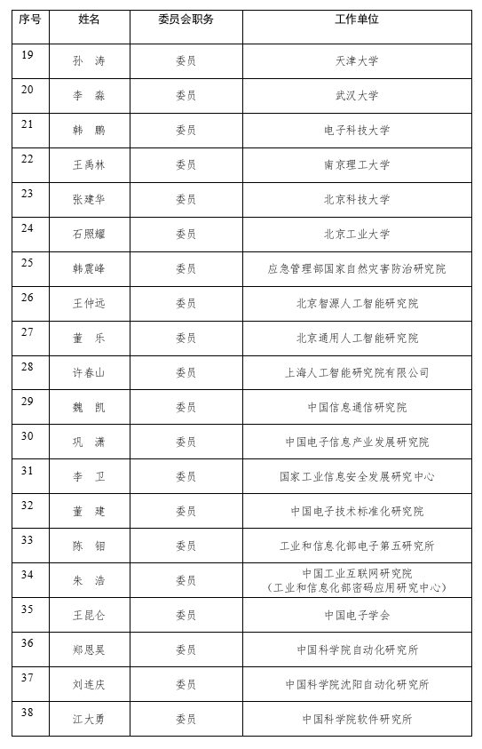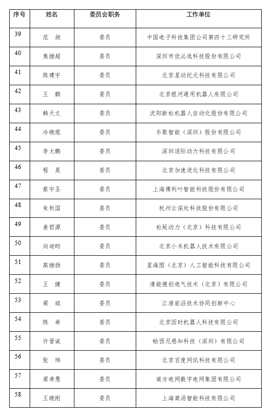 工业和信息化部人形机器人标准化技术委员会委员名单公示