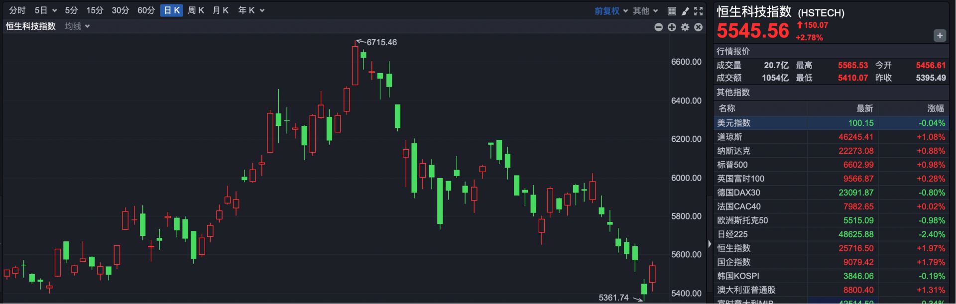 恒生科技指数报收于5545.56点,上涨150.07点,涨幅2.78%。