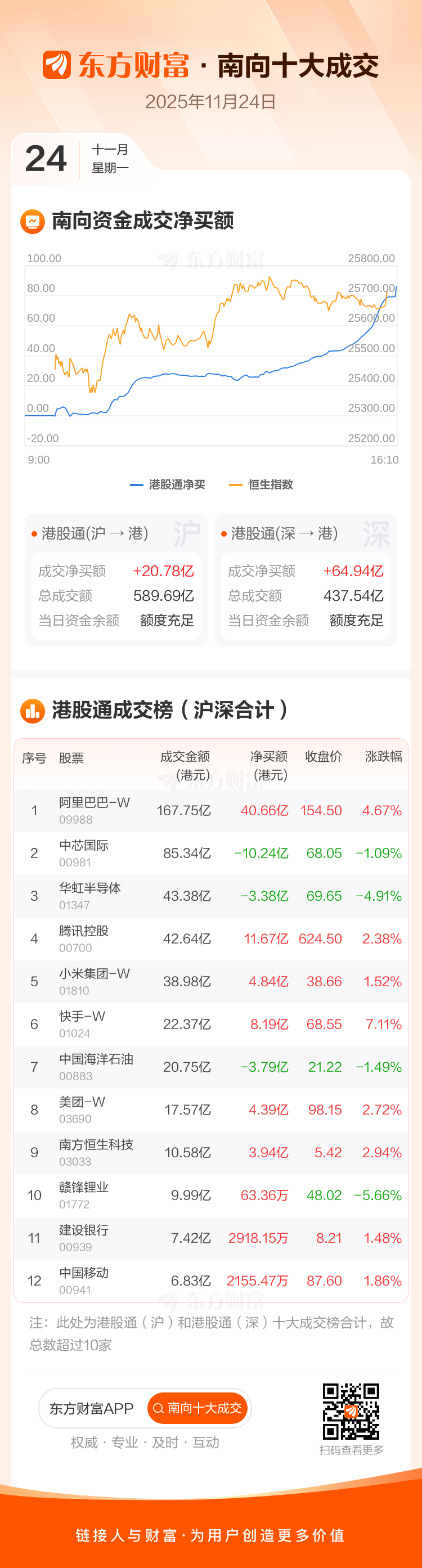 11月24日南向资金净买逾85亿港元,逾40亿抢筹阿里巴巴-W