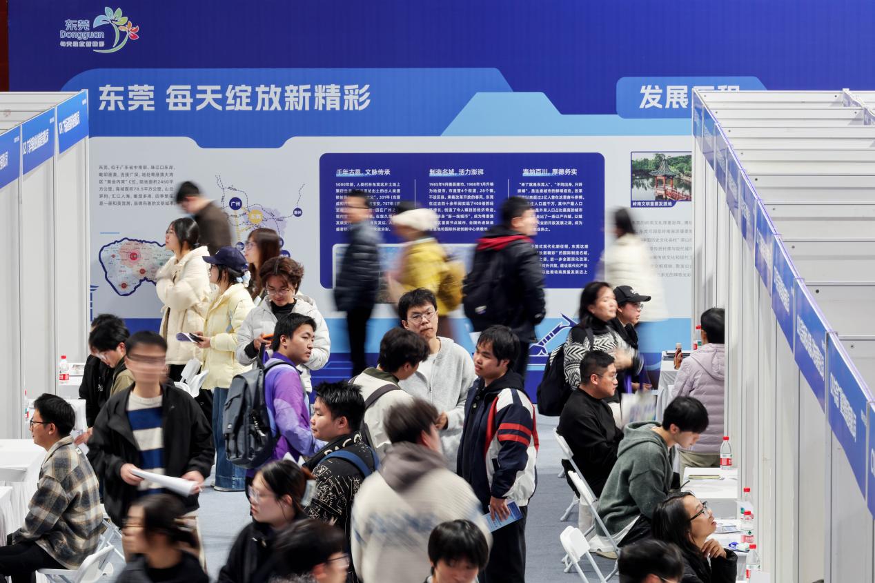 AI面试、百万年薪岗位、青春市集·····走进浙江大学招聘会现场,十五运吉祥物“喜洋洋”“乐融融”与学子互动合影,“东莞一号”国产超轻型固定翼飞机实物首次运抵浙大成为现场焦点,“火柴盒”城市乐队、潮玩展品、仙津与徐福记特色美食等文化与产业元素集中亮相,为现场注入年轻、开放的湾区气息。