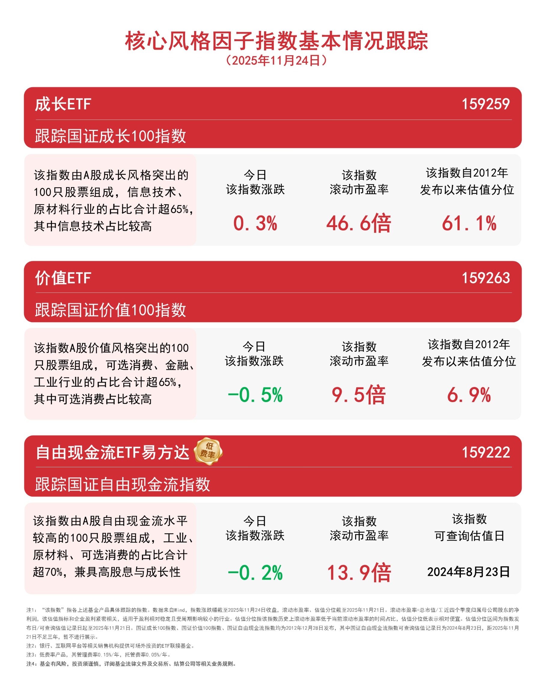 截至收盘,国证成长100指数上涨0.3%,国证自由现金流指数下跌0.2%,国证价值100指数下跌0.5%,成长ETF(159259)全天净申购达1000万份。Wind数据显示,该ETF此前连续4个交易日获资金净流入,合计超8000万元。