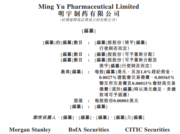 港交所官网信息显示,11月24日,明宇制药有限公司(下称“明宇制药”)递交招股书,联席保荐人为摩根士丹利、美银证券及中信证券。