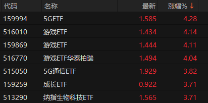 ETF收盘:5GETF涨4.28% 沙特ETF跌1.38%