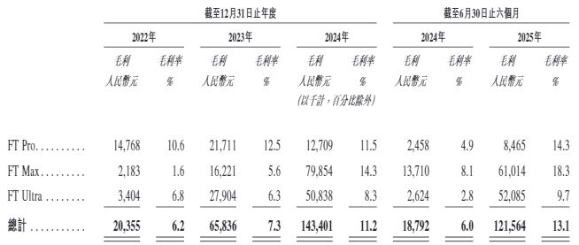 不过,今年上半年营收占比近六成的FT Ultra并非毛利率最高的业务。仍按今年上半年计算,该项业务的毛利率近9.7%,而营收占比35.9%的FT Max毛利率几乎是它的两倍(18.3%)。