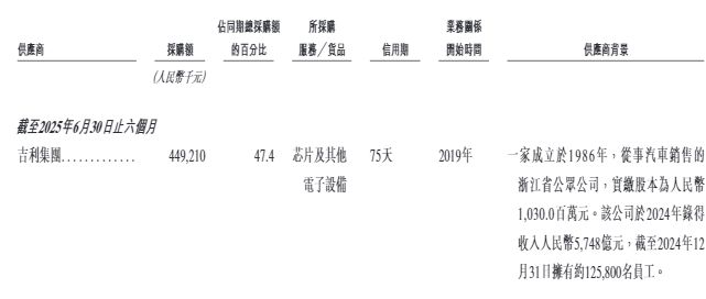 需要指出的是,福瑞泰克去年和今年上半年这家占总采购额39.5%和47.4%的供应商,也是吉利,福瑞泰克向其采购芯片及其他电子设备。此外,相较于其他主要供应商最高60天的信用期,福瑞泰克给予了吉利75天的信用期。