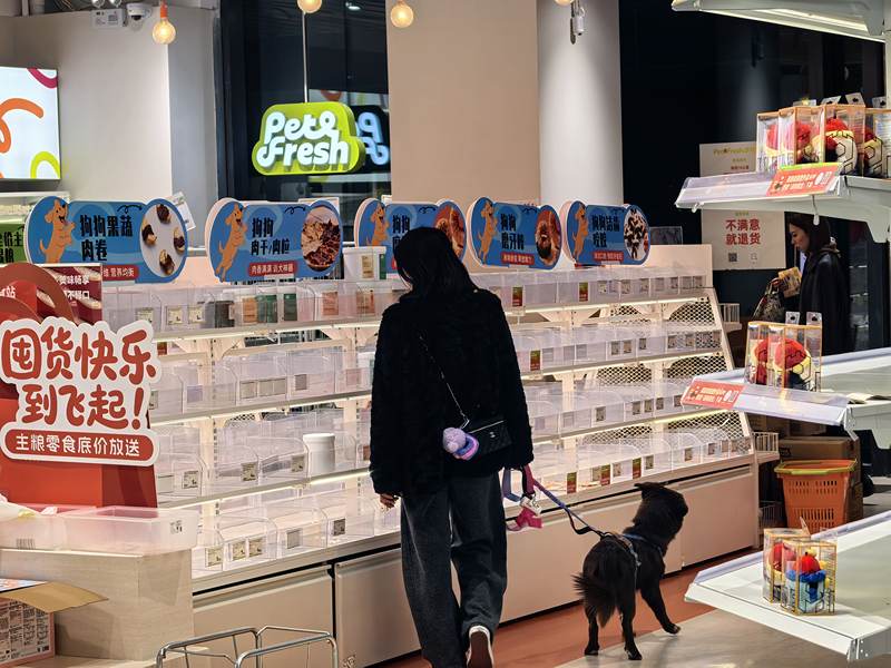 11月25日,派特鲜生首店上海海粟文化广场店内还有消费者携宠前来消费。新京报贝壳财经记者俞金旻摄