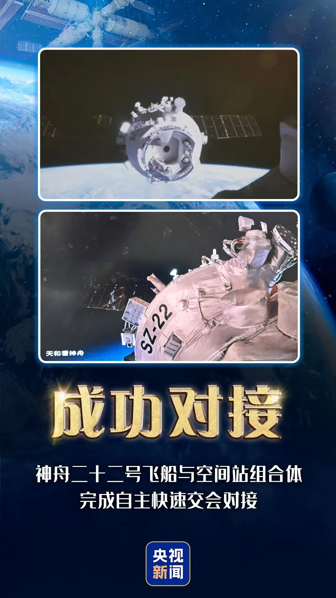 据中国载人航天工程办公室消息,神舟二十二号飞船入轨后顺利完成状态设置,于北京时间2025年11月25日15时50分,成功对接于空间站天和核心舱前向端口。交会对接完成后,神舟二十二号飞船将转入组合体停靠段,后续将作为神舟二十一号航天员乘组的返回飞船。