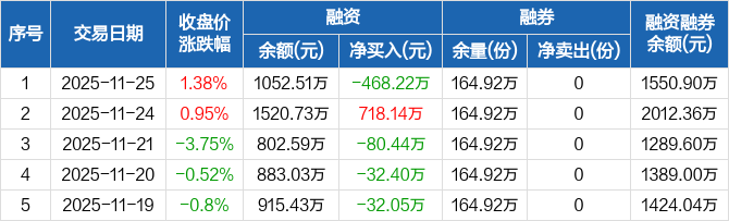 中证1000ETF易方达:融资净偿还468.22万元,融资余额1052.51万元(11-25)
