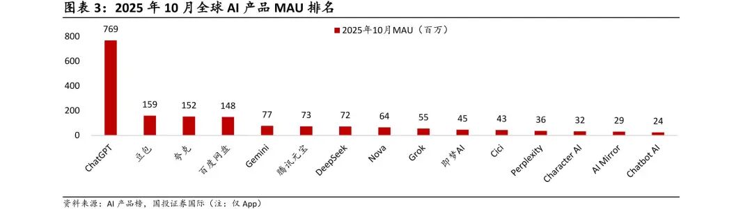 目前互联网公司均在持续发力建设生态内的C端ChatBot/Agent产品,如阿里千问App、字节豆包、腾讯元宝、携程Trip Genie、美团小美App、快手Kwali等。我们认为,考虑当前国内开源模型的竞争激烈程度,同时我们观测到推理需求侧,目前仍展现稳健增长势头,对AI投资主线仍有支撑。