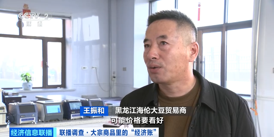 黑龙江海伦大豆贸易商王振和:今年大豆价格长期看好,所以我们收的力度大了一些,往前抢。