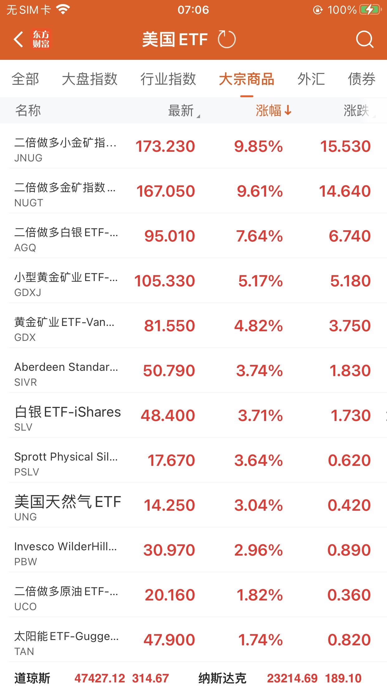 2倍做多白银ETF-ProShares(AGQ.US) 升7.64%,成交额2.23亿美元。