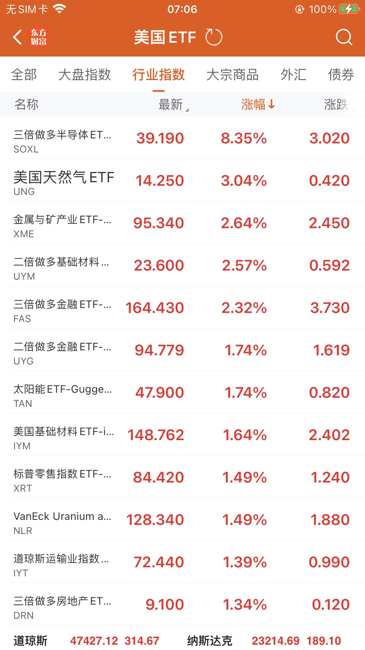三倍做多金融指数ETF-Direxion(FAS.US) 升2.32%,成交额8768.6万美元。