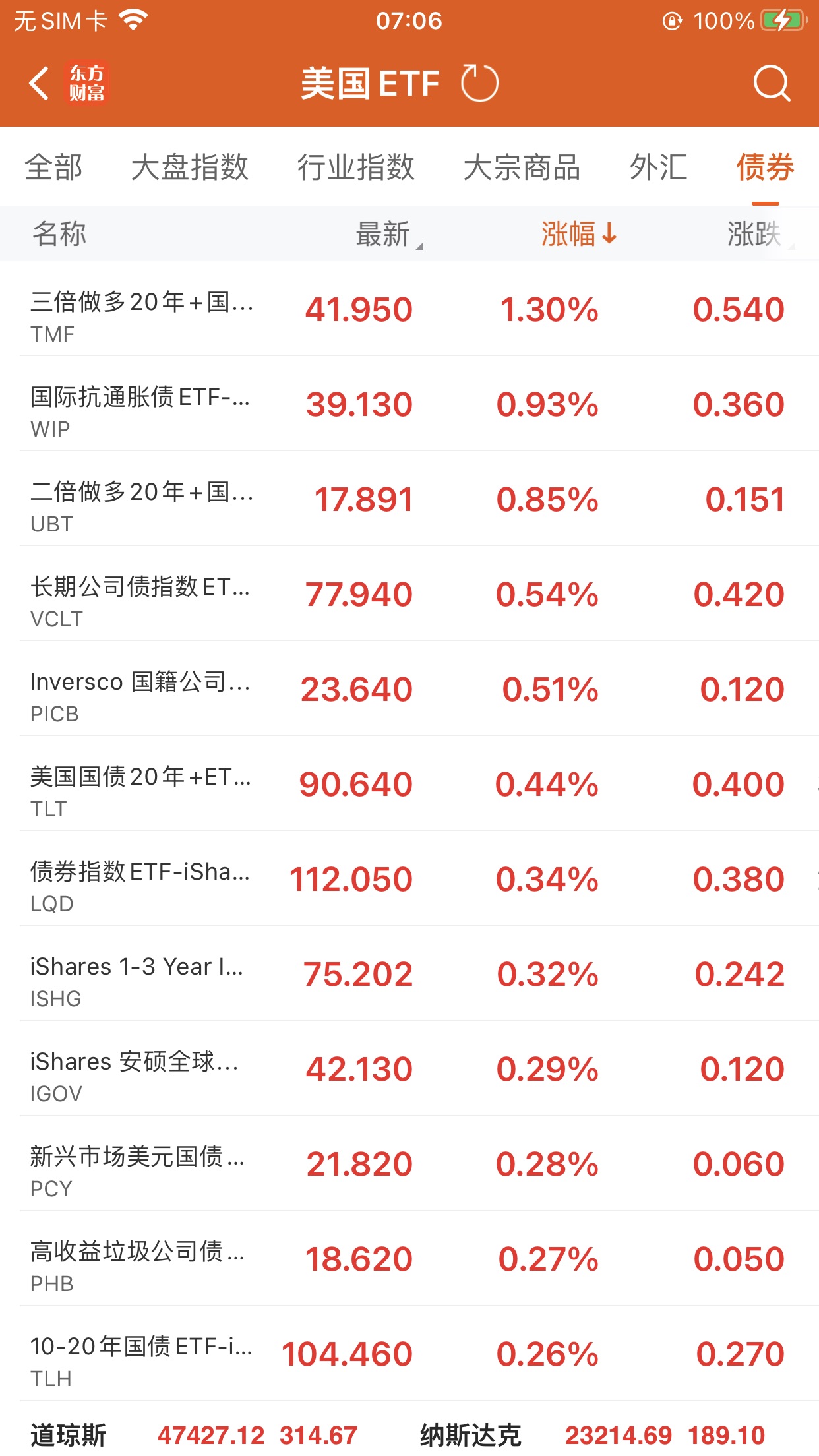 三倍做多20年期以上国债ETF-Direxion(TMF.US) 升1.30%,成交额1.66亿美元。