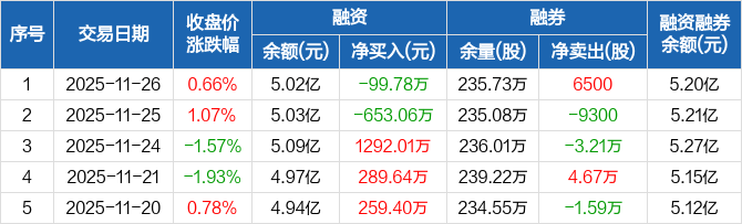 雅戈尔:融资净偿还99.78万元,融资余额5.02亿元(11-26)