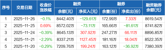 电力ETF:融资净偿还129.61万元,融资余额8442.4万元(11-26)
