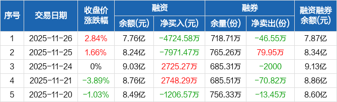 创业板50ETF:融资净偿还4724.58万元,融资余额7.76亿元(11-26)
